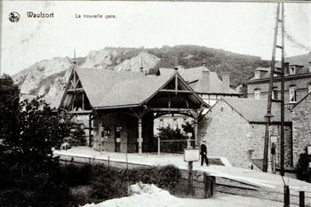 BeschrijvingReproductie van een postkaart met als opschrift 'station Waulsort La nouvelle gare'. De postkaart toont de achterzijde en het perron van het station.