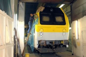 BeschrijvingDe groep bevat 30 digitale foto's. In de centrale werkplaats Cuesmes worden M 5-rijtuigen gerenoveerd. De buitenkant wordt herschilderd in wit en geel. De binnenkant wordt opnieuw bekleed.
