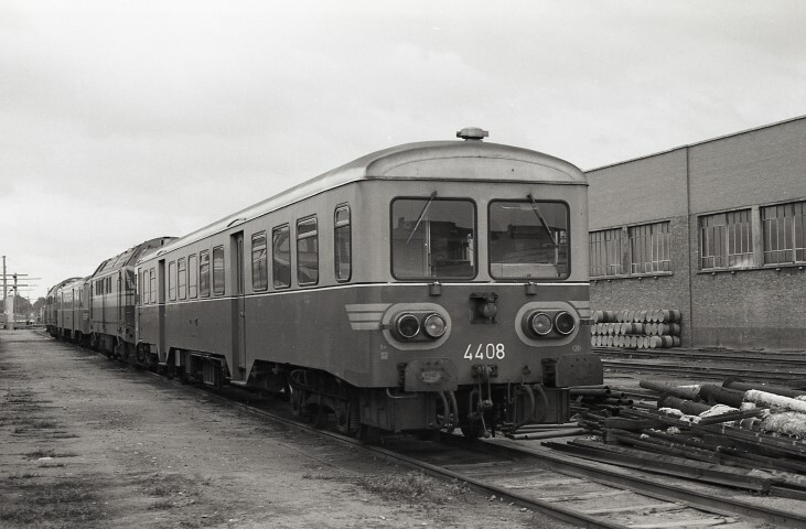 Deze motorwagen behoort tot de reeks 44. Hij staat opgesteld aan de zijkant van de tractiewerkplaats. Achter de motorwagen zien we nog twee diesellocomotieven en één motorwagen.