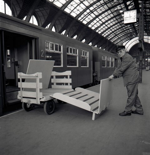Deze fotogroep bevat 12 negatieven. Ze tonen het prototype van een verplaatsbare laadhelling waarmee een persoon met beperkte mobiliteit kan instappen in de trein. Dit model diende als basis voor de latere uitvoeringen van de laadhellingen. Een aantal plooibare onderdelen dienden als helling om het hoogteverschil tussen het perron en het M 2-rijtuig te overbruggen.