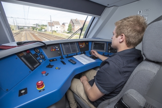Deze groep bestaat uit zeven digitale foto’s. Ze tonen een treinbestuurder in de stuurpost van een motorstel Desiro. De stuurpost is uitgerust met meetapparaten voor de controle van het elektrisch vermogen, de snelheid en de werking van de remmen. De bestuurder beschikt over verschillende drukknoppen en hendels om de trein te besturen. Via de boordcomputer krijgt hij informatie over vertragingen en technische problemen.