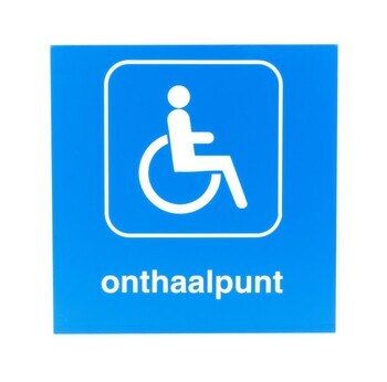 BeschrijvingBlauw bord met witte letters en een pictogram van een rolstoelgebruiker. Het bord duidde het punt aan waar reizigers met een beperkte mobiliteit zich konden aanmelden wanneer ze hulp nodig hadden om naar het perron te gaan en in de trein plaats te nemen.