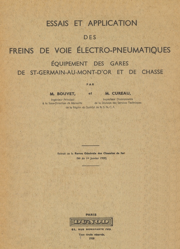 - TitelEssais et application des freins de voie électro-pneumatiques. Equipement des gares de St-Germain-au-Mont-d'Or et de Chasse