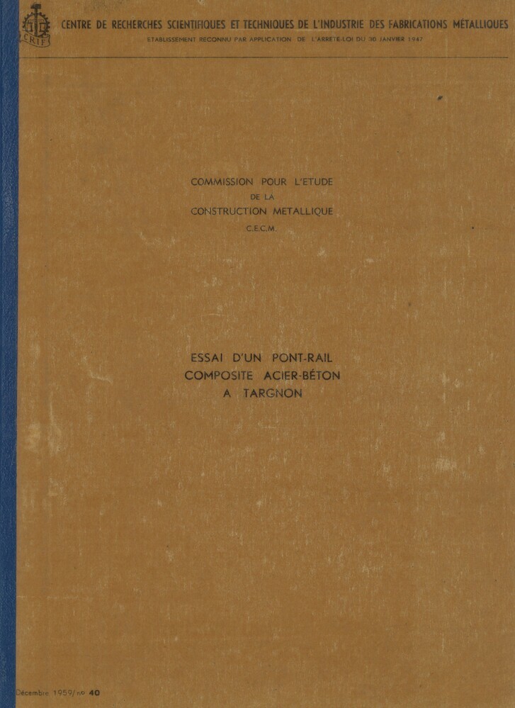 - TitelEssai d'un pont-rail composite acier-béton à Targnon