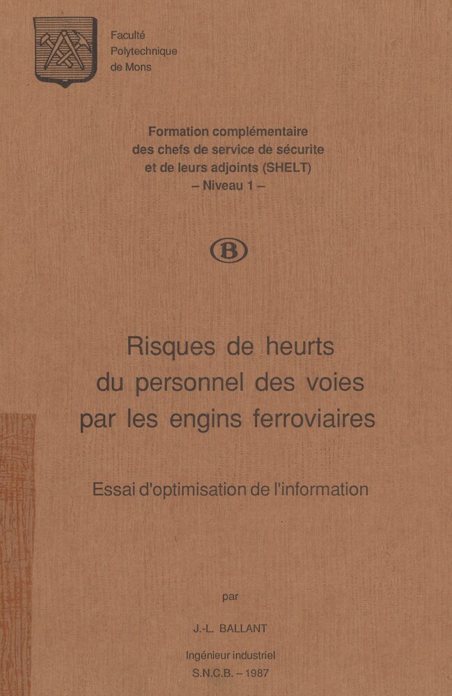 - TitelRisques de heurts du personnel des voies par les engins ferroviaires. Essai d'optimisation de l'information
