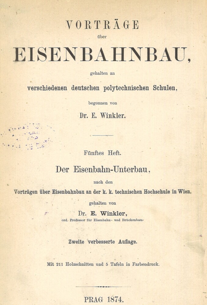 - TitelVorträge über Eisenbahnbau, gehalten an verschiedenen deutschen polytechnischen Schulen. Fünftes Heft : Der Eisenbahn-Unterbau, nach den Vorträgen über Eisenbahnbau, gehalten an der k.k. technischen Hochschule in Wien