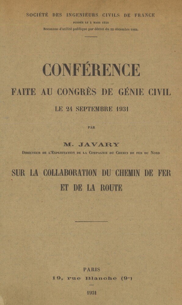 - TitelLa collaboration du chemin de fer et de la route. Conférence faite au Congrès du Génie civil, le 24 septembre 1931
