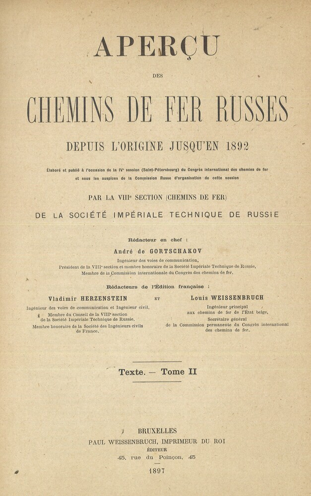 - TitelAperçu des chemins de fer russes depuis l'origine jusqu'en 1892. Tome II : Texte