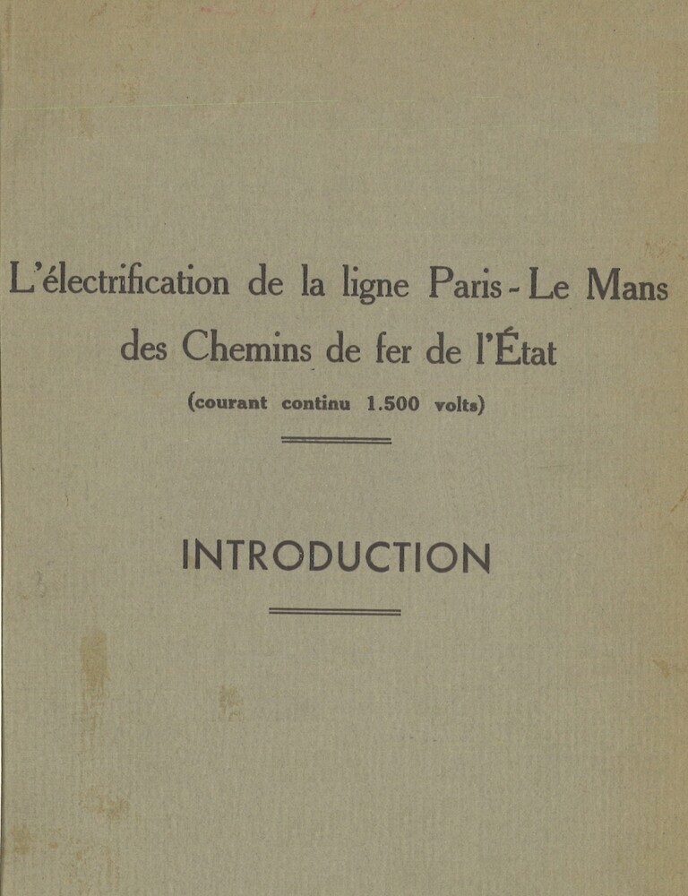 - TitelL'électrification de la ligne Paris - Le Mans des Chemins de fer de l'Etat. Introduction. Les installations fixes. Le matériel roulant