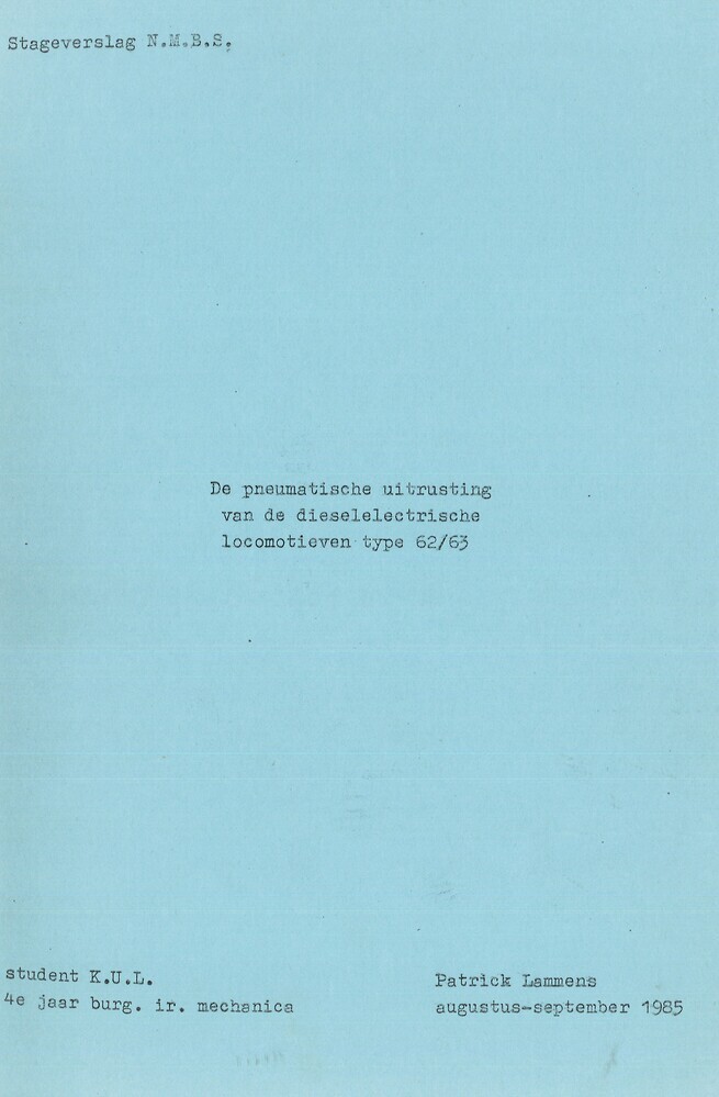 - TitelDe pneumatische uitrusting van de dieselelectrische locomotieven type 62/63. Stageverslag N.M.B.S., student 4° jaargang burg. ir. mechanica