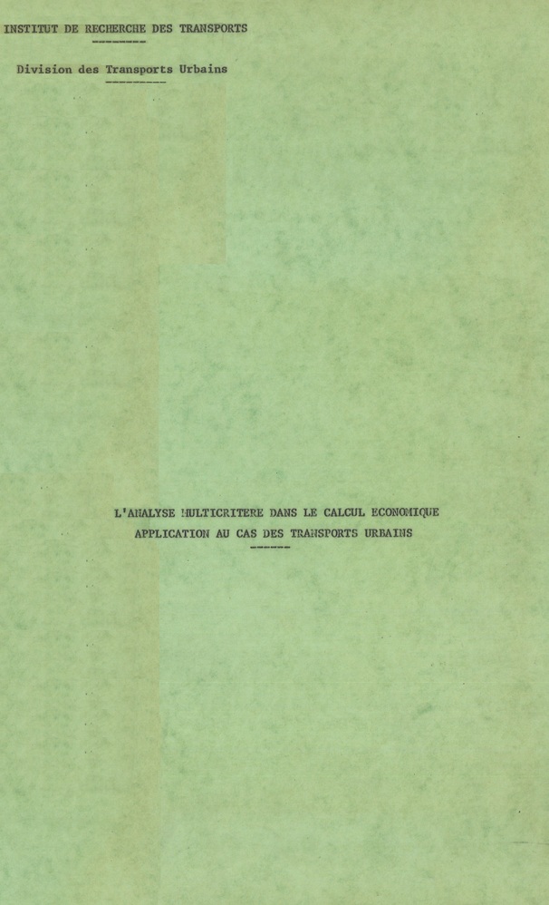 - TitelL'analyse multicritère dans le calcul économique. Application au cas des transports urbains