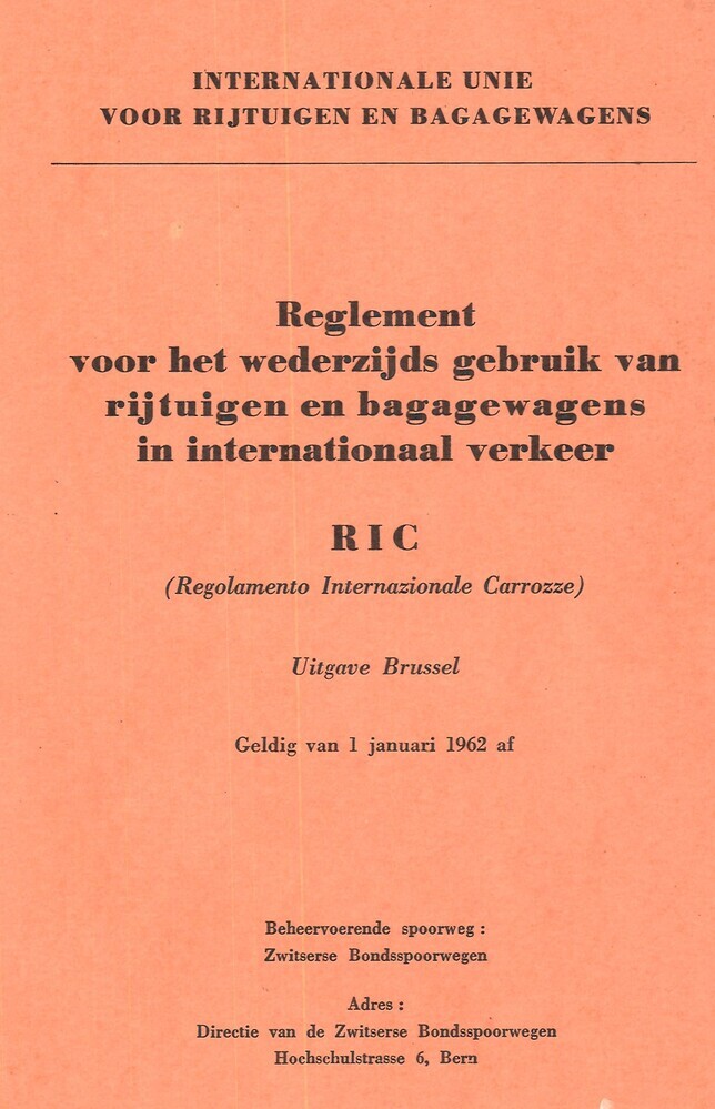 - TitelReglement voor het wederzijds gebruik van rijtuigen en bagagewagens in internationaal verkeer. RIC