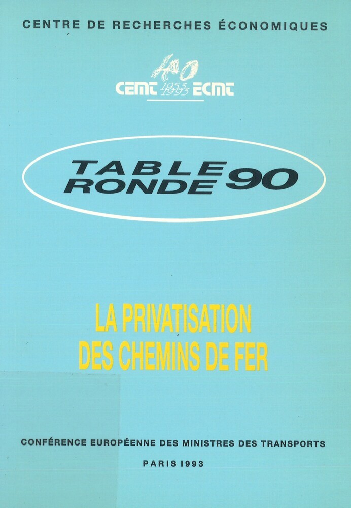 - TitelLa privatisation des chemins de fer. Rapport de la quatre-vingt-dixième table ronde d'économie des transports tenue à Paris les 4 et 5 février 1993