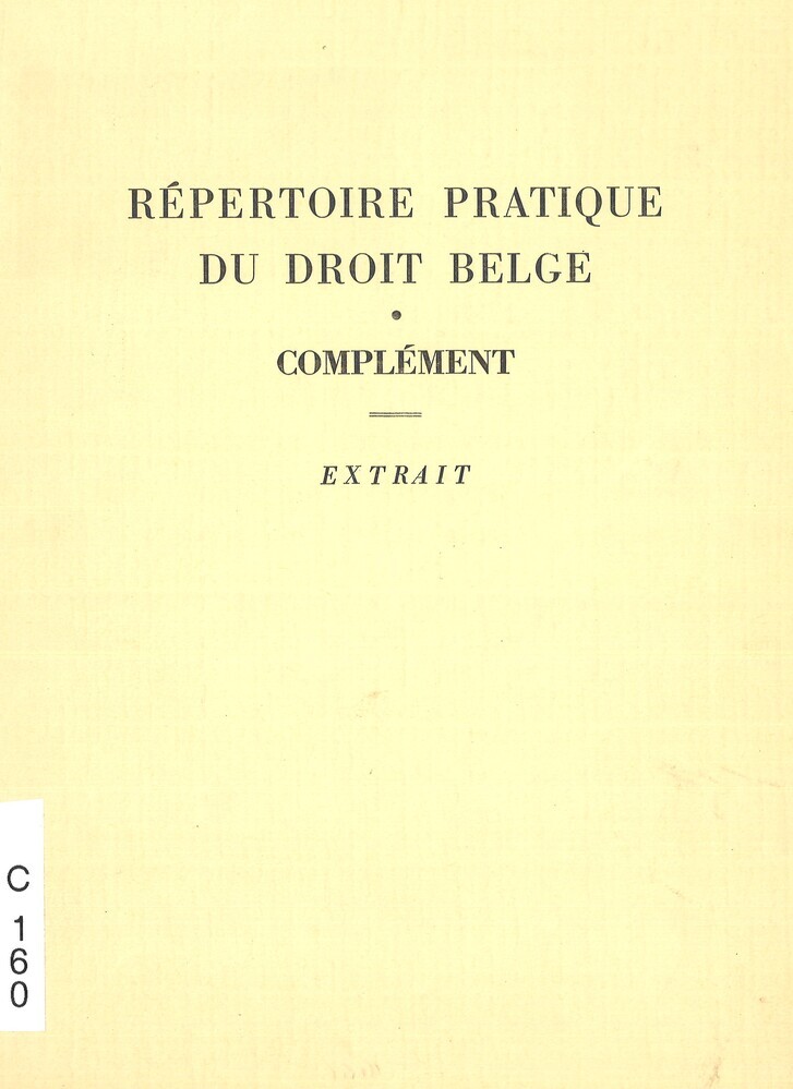 - TitelRépertoire du droit belge. Complément. Extrait. Chemins de fer