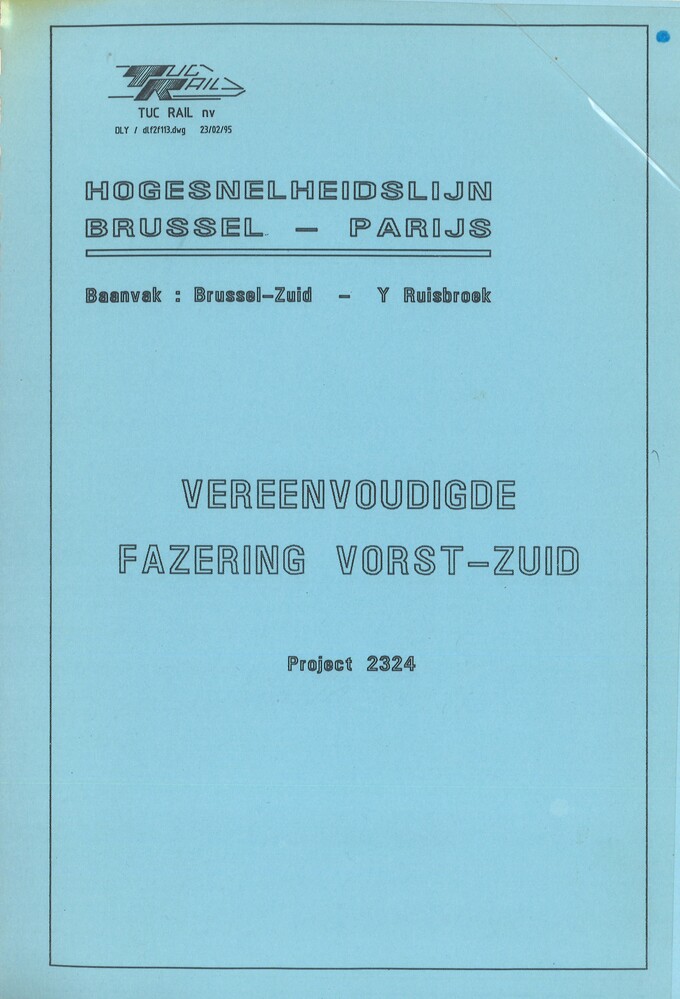 - TitelHogesnelheidslijn Brussel - Parijs. Baanvak : Brussel-Zuid - Y Ruisbroek. Vereenvoudigde fasering Vorst-Zuid. Project 2324
