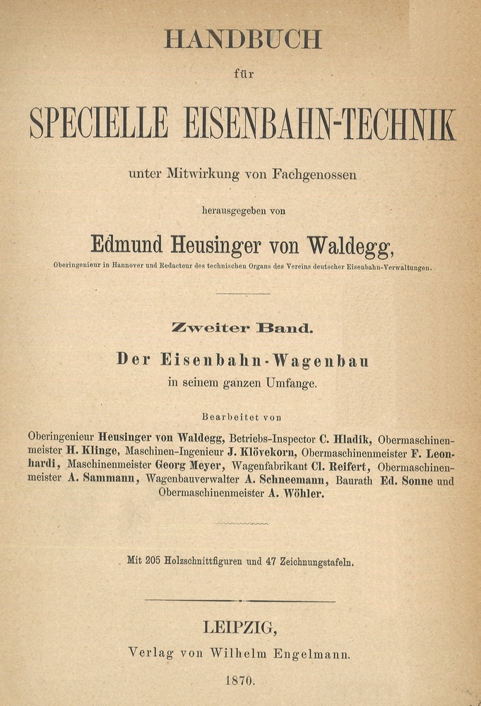 - TitelHandbuch für specielle Eisenbahn-Technik. Zweiter Band. Der Eisenbahn-Wagenbau