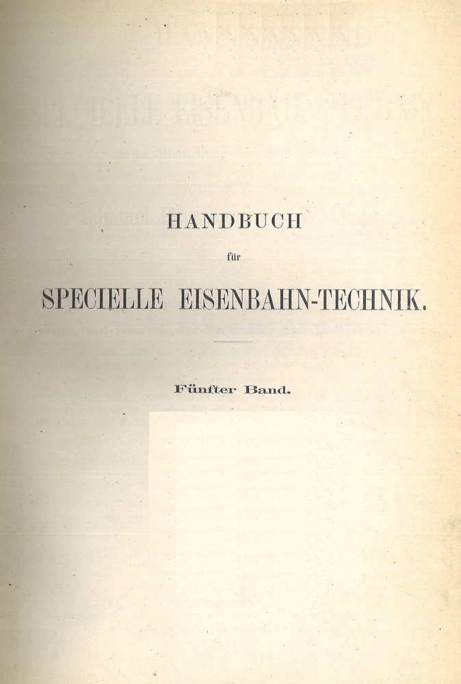 - TitelHandbuch für Specielle Eisenbahn-Technik. Fünfter Band. Bau und Betrieb der Secundär- und Tertiärbahnen, einschliesslich der schwebenden Draht- und Seilbahnen