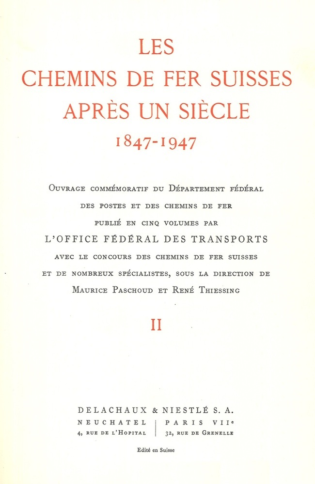 - TitelLes chemins de fer suisses après un siècle (1847-1947). Tome deuxième. Installations fixes des chemins de fer à voie normale et à voie étroite