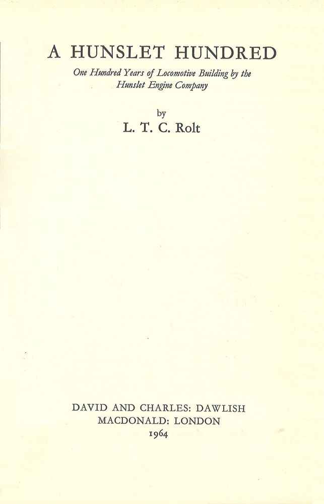 - TitelA Hunslet hundred. One hundred years of locomotive building by the Hunslet Engine Company