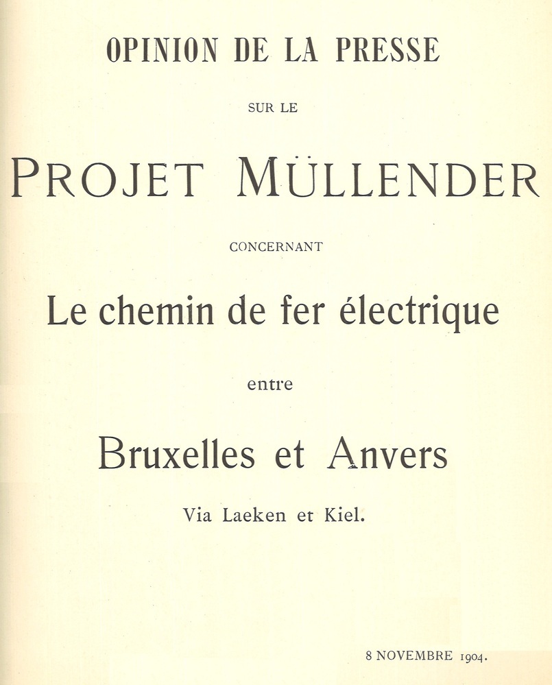 - TitelOpinion de la presse sur le projet Müllender concernant le chemin de fer électrique entre Bruxelles et Anvers via Laeken et Kiel
