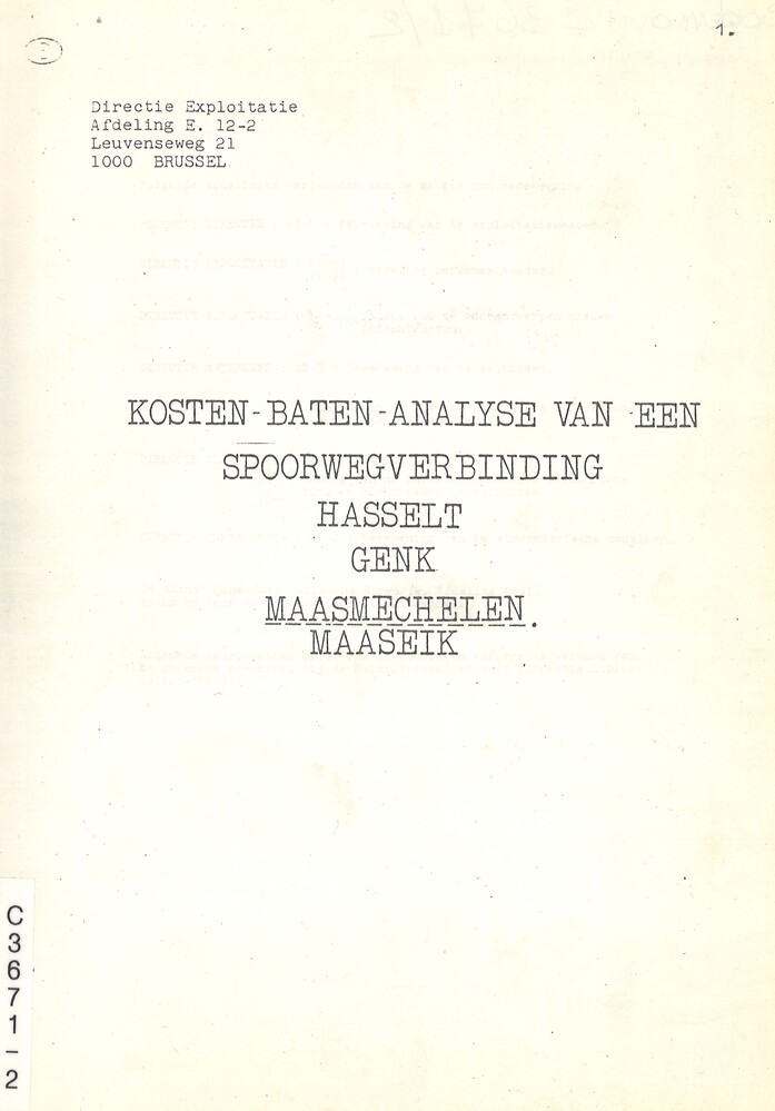 - TitelKosten-baten-analyse van een spoorwegverbinding Hasselt-Genk-Maasmechelen-Maaseik