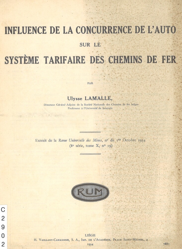 - TitelInfluence de la concurrence de l'auto sur le système tarifaire des chemins de fer