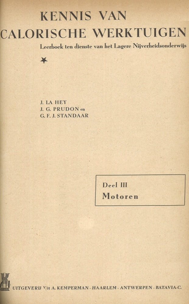 - TitelKennis van calorische werktuigen. Leerboek ten dienste van het lagere nijverheidsonderwijs, door J. La Heij, J.G. Prudon & G.F.J. Standaar. Deel III : Motoren