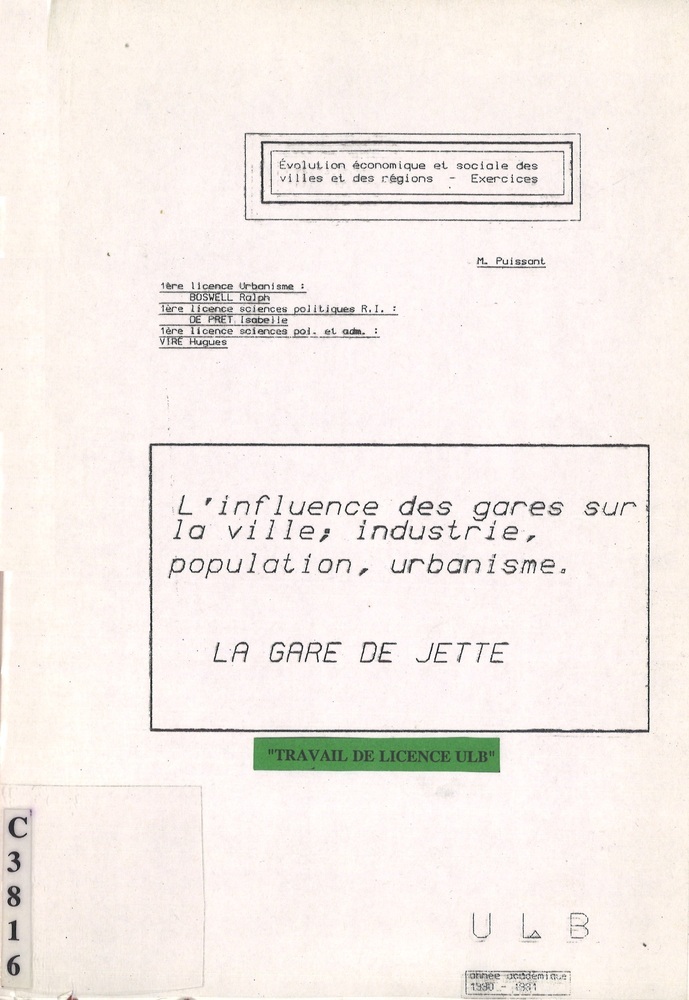- TitelL'influence des gares sur la ville; industrie, population, urbanisme. La gare de Jette