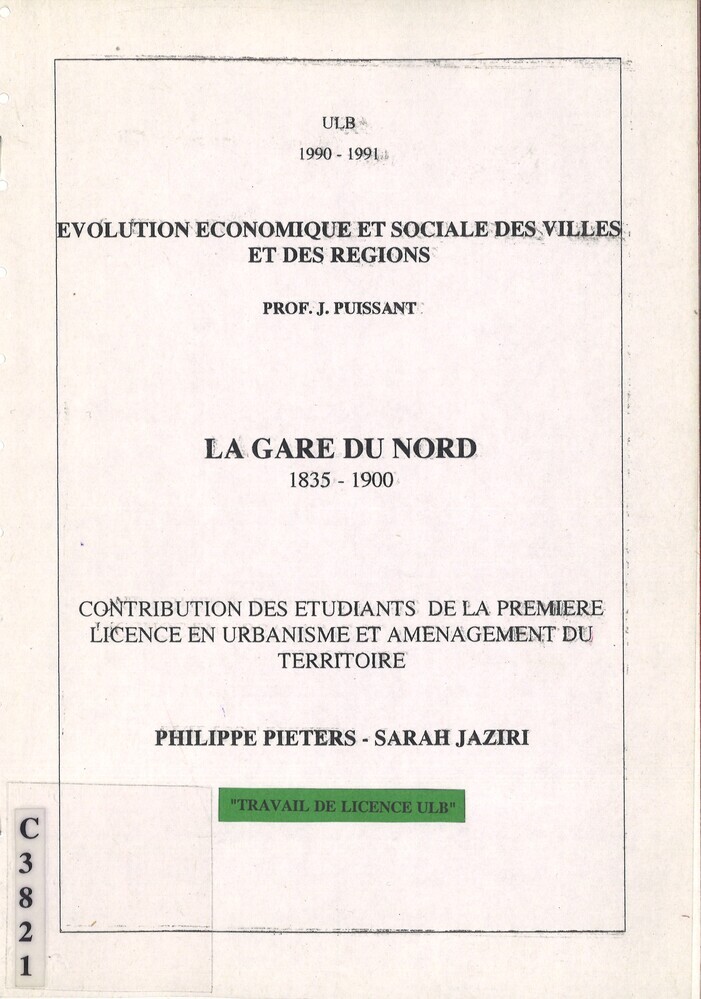 - TitelEvolution économique et sociale des villes et des régions. La gare du Nord 1835-1900