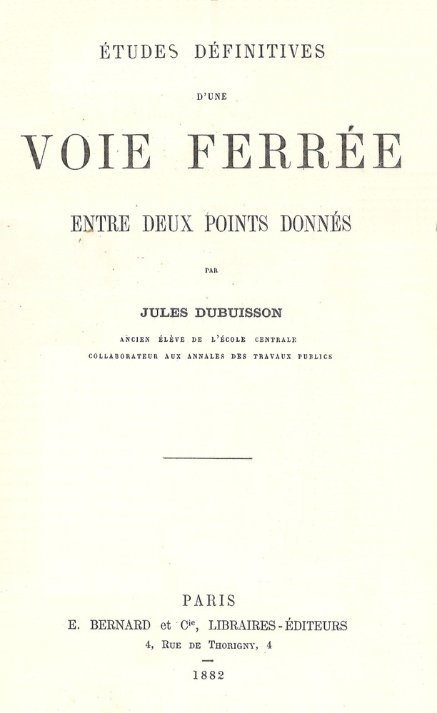 - TitelEtudes définitives d'une voie ferrée entre deux points donnés