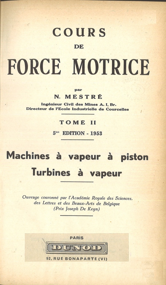 - TitelCours de force motrice. Tome II : Machines à vapeur à piston. Turbines à vapeur. Tome III : Moteurs à combustion interne. Turbines à gaz