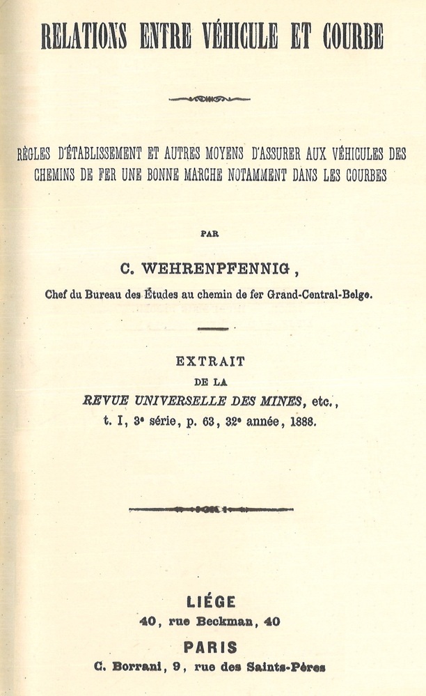 - TitelRelations entre véhicule et courbe. Règles d'établissement et autres moyens d'assurer aux véhicules des chemins de fer une bonne marche notamment dans les courbes