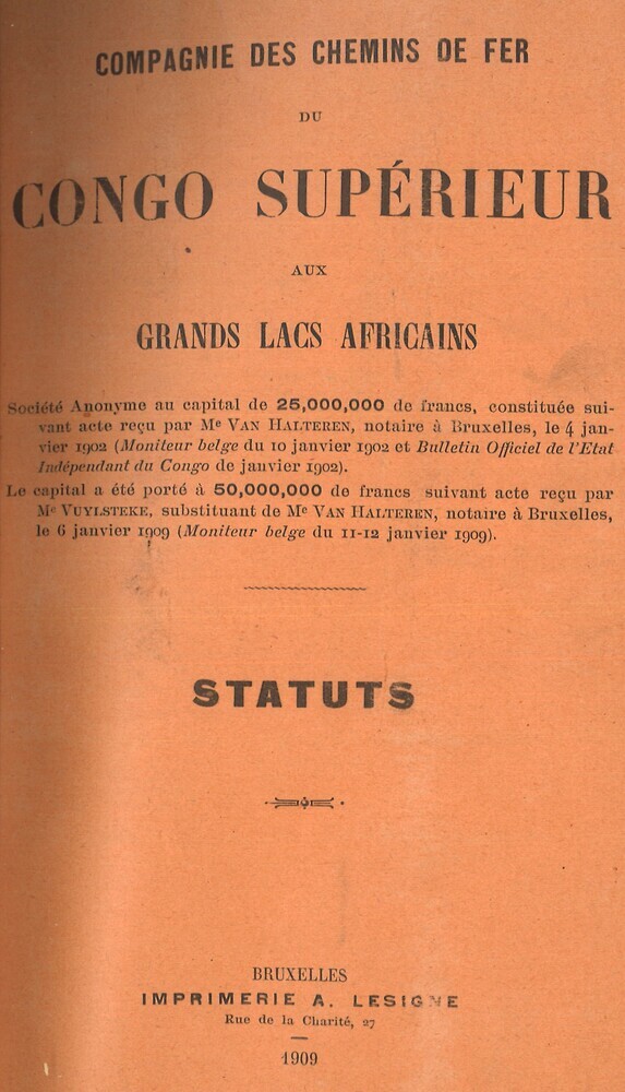 - TitelCompagnie des chemins de fer du Congo supérieur aux grands lacs africains. Statuts