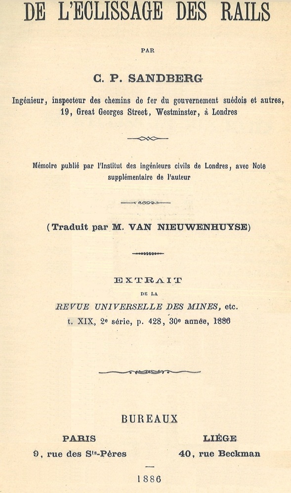 - TitelDe l'éclissage des rails (Extrait de la Revue Universelle des Mines, t. XIX, 2°série, p.428)