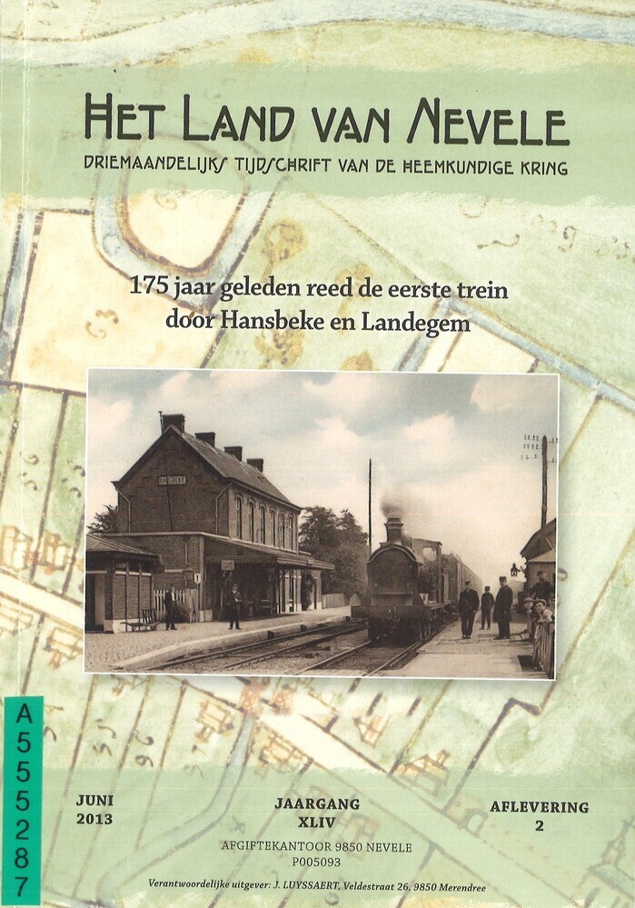 - TitelHansbeke en spoorlijn 50A. 175 jaar geleden reed de eerste trein door Hansbeke en Landegem. Stationsproject Hansbeke. Ideeën over stationsbuurt- en dorpskernvernieuwing. (Uittreksel uit het Heemkundig tijdschrift : "Het Land van Nevele", XLIV, juni 2013, aflevering 2, p 1 tot 74)
