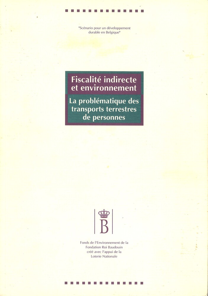 Deze studie onderzoekt of het mogelijk is om via indirecte belastingen de mobiliteitskosten te corrigeren en, in bevestigend geval, hoe dit kan gebeuren. In bijlage : "Ecoplan. The variabilisation of transport costs in Switzerland or ecological taxation of transport - The Swiss Concepts", "Congestion metering in Cambridge city", Traffic growth on Cambridge radials", "Complementary transport systems in urban areas", "Scenario voor een duurzame mobiliteit". (Zie C4118)