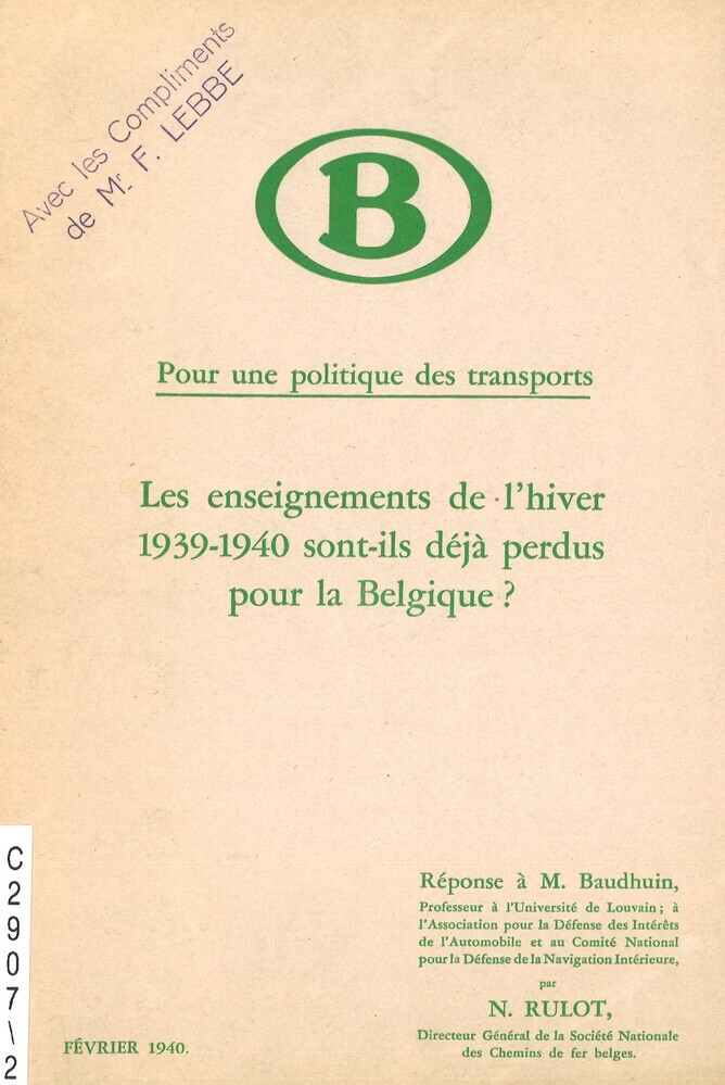 - TitelPour une politique des transports. Les enseignements de l'hiver 1939-1940 sont-ils déjà perdus pour la Belgique? Réponse à M. Baudhuin