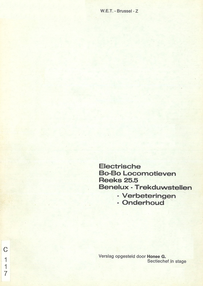 - TitelElectrische Bo-Bo locomotieven. Reeks 25.5. Benelux - Trekduwstellen. Verbeteringen. Onderhoud