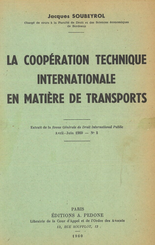 - TitelLa coopération technique internationale en matière de transports. Extrait de la Revue Générale de Droit International Public. Avril-Juin 1960 - N°2