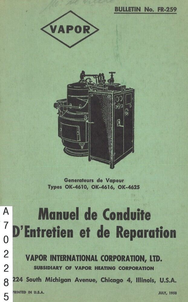 - TitelGénérateurs de vapeur. Types OK-4610, OK-4616, OK-4625. Manuel de Conduite d'Entretien et de Reparation