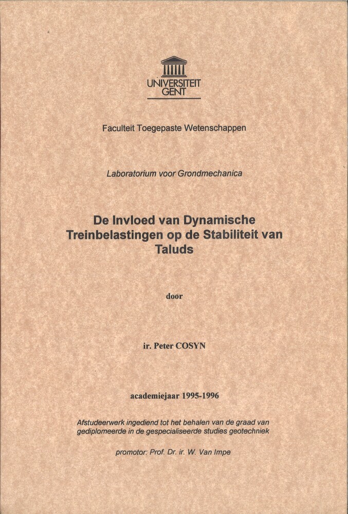 - TitelDe invloed van Dynamische Treinbelastingen op de Stabiliteit van Taluds. Afstudeerwerk ingediend tot het behalen van de graad van gediplomeerde in de gespecialiseerde studies geotechniek