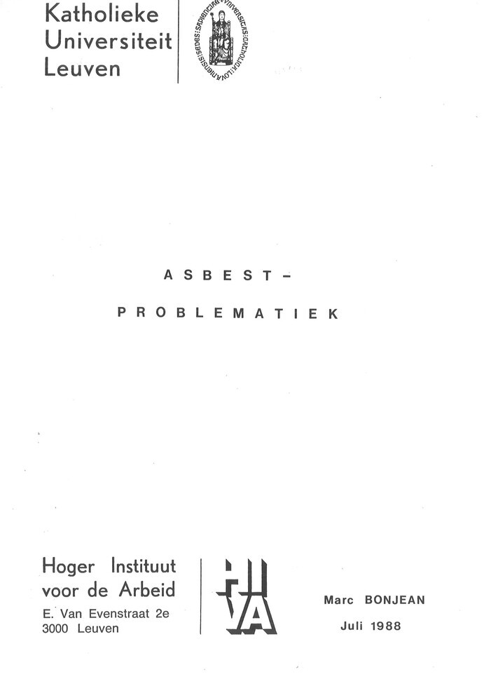 - TitelAsbestproblematiek. Eindwerk aangeboden tot het bekomen van het getuigschrift van Aanvullende Vorming voor Veiligheidsdiensthoofden Overgangsniveau