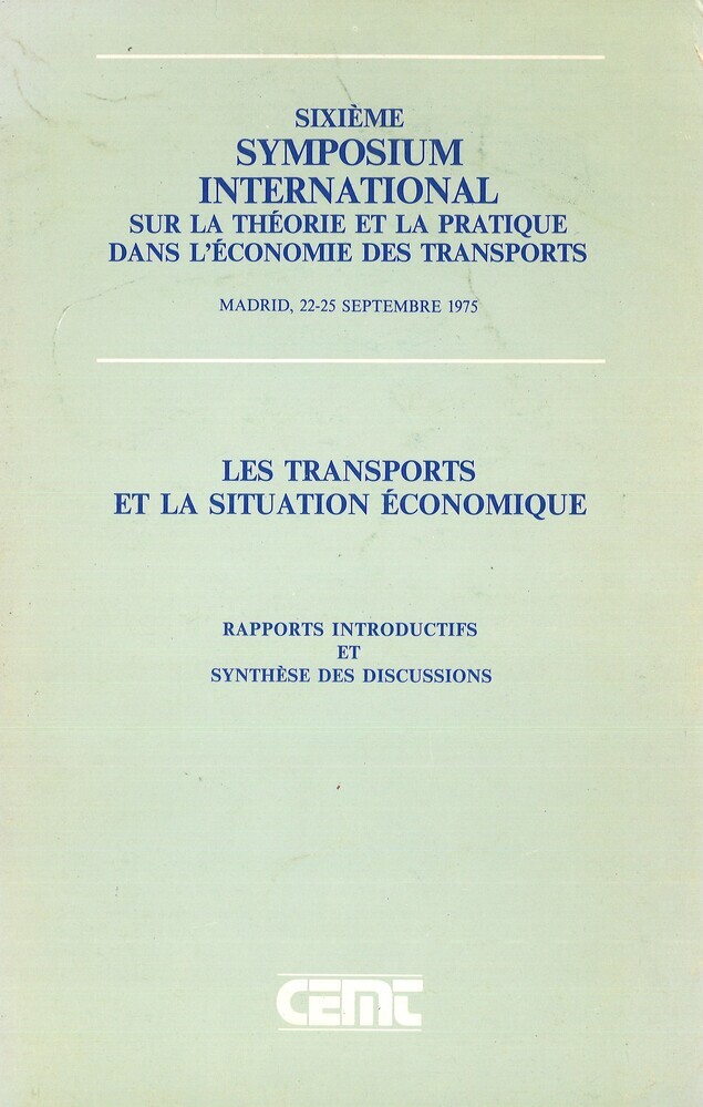 Sixième symposium international sur la théorie et la pratique dans l'économie des transports. Madrid, 22-25 septembre 1975. Les transports et la situation économique. Rapports introductifs et synthèse des discussions