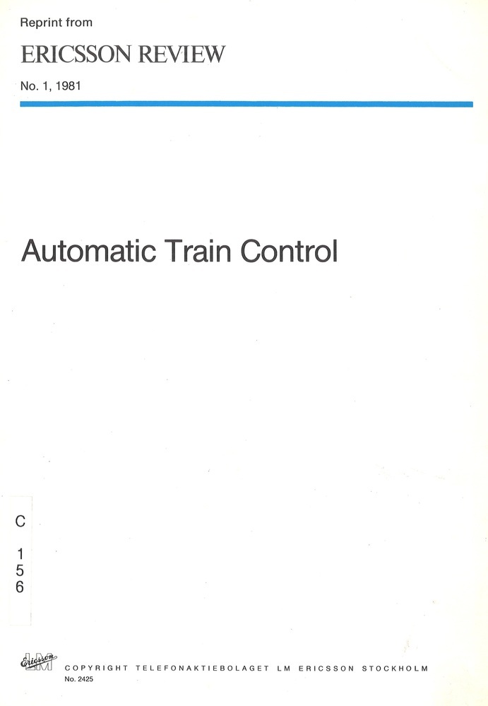 - TitelAutomatic Train Control. Reprint from Ericsson Review