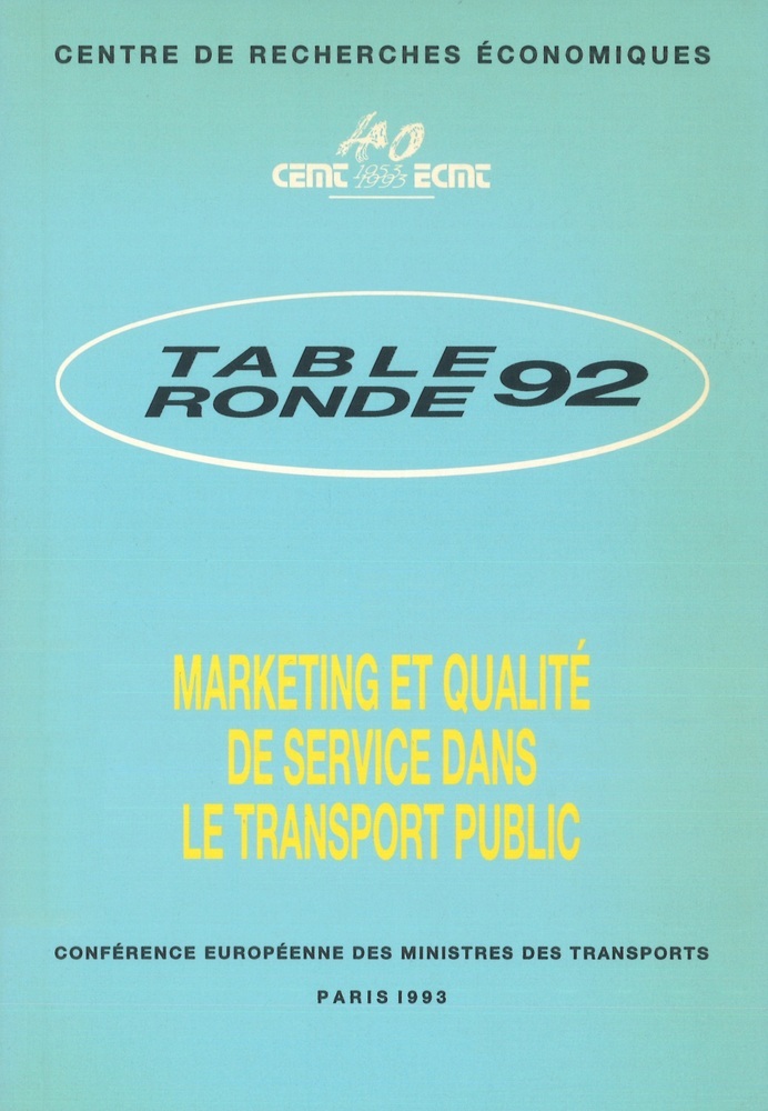 - TitreMarketing et qualité de service dans le transport public. Rapport de la quatre-vingt-douzième table ronde d'économie des transports tenue à Paris les 5 et 6 décembre 1991