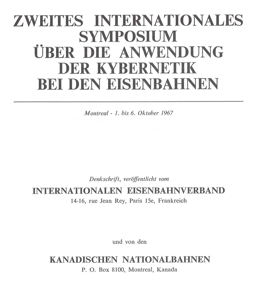 - TitelZweites Internationales Symposium über die anwendung der Kybernetik bei den Eisenbahnen. Montreal - 1. bis 6. Oktober 1967
