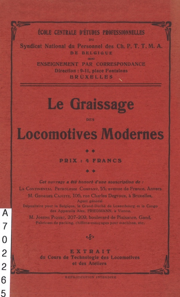 - TitelLe Graissage des Locomotives Modernes. Extrait du Cours de Technologie des Locomotives et Ateliers. Troisième Partie