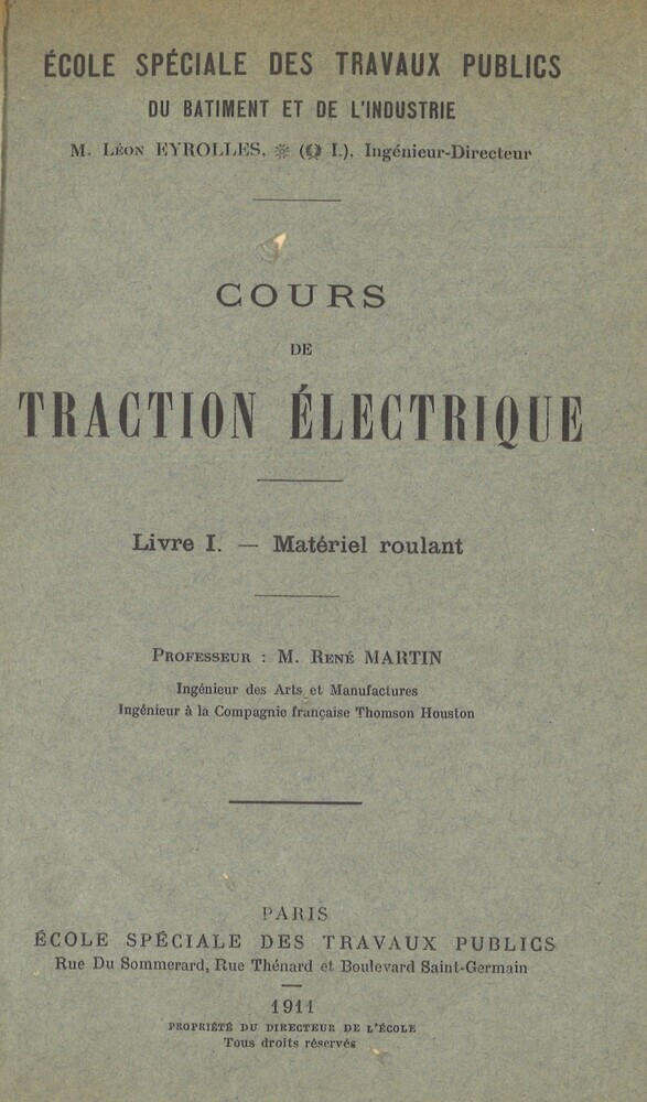 - TitelCours de traction électrique. Livre I : Matériel roulant