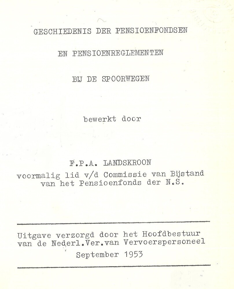 - TitelGeschiedenis der pensioenfondsen en pensioenreglementen bij de spoorwegen