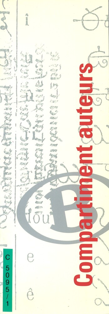 - TitelCompartiment auteurs. Offert aux voyageurs par la SNCB à l'occasion de la foire du livre de Bruxelles. 27 février au 3 mars 2002